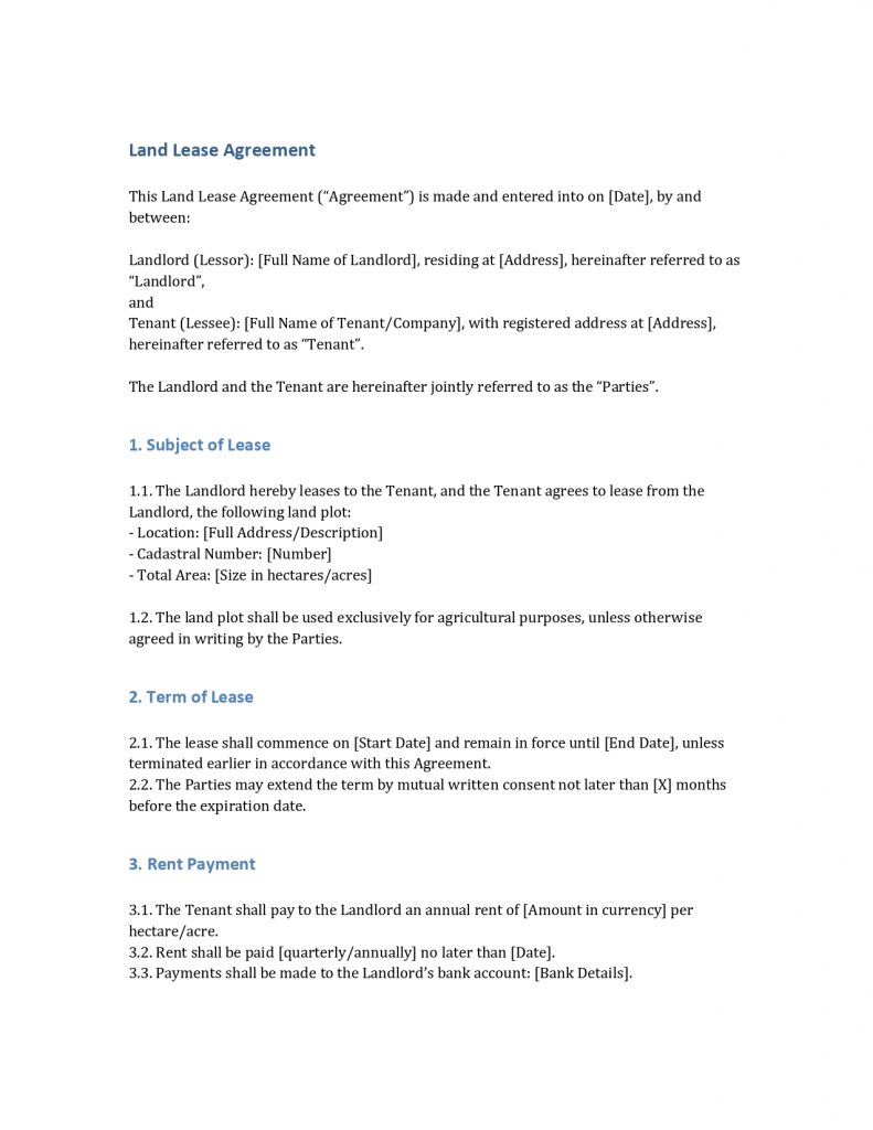 A properly drafted land lease agreement ensures stability for both agribusiness and landowners. It guarantees transparency in relations, timely payment, and legal protection in case of disputes.